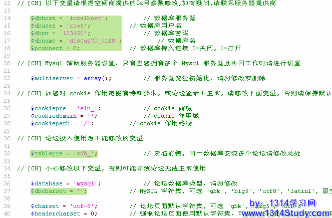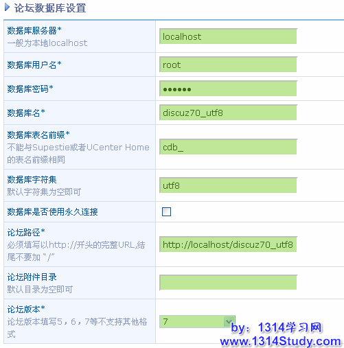 下面,逐项对应论坛数据库设置,如下图所示,