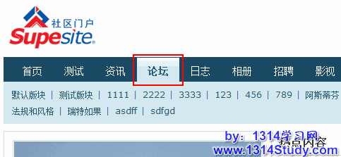 返回 SupeSite 前台,可以看到页面增加了“论坛”频道,如下图所示,