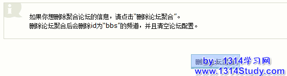 如果你想删除聚合论坛的信息,请点击“删除论坛聚合”。删除论坛聚合后会删除id为“bbs”的频道,并且清空论坛配置。