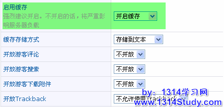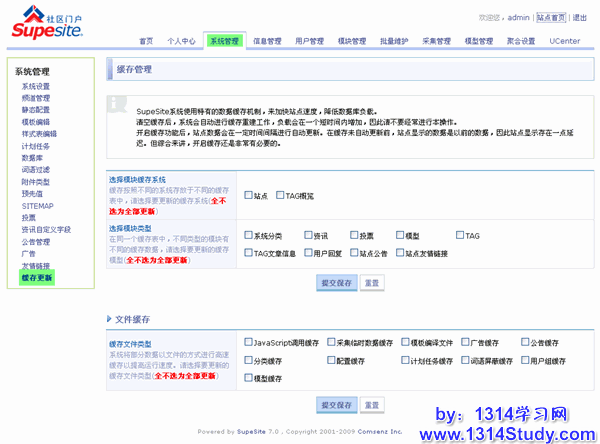 SupeSite 7.0 后台 => 系统管设置 => 启用缓存,选择开启缓存,如下图所示: