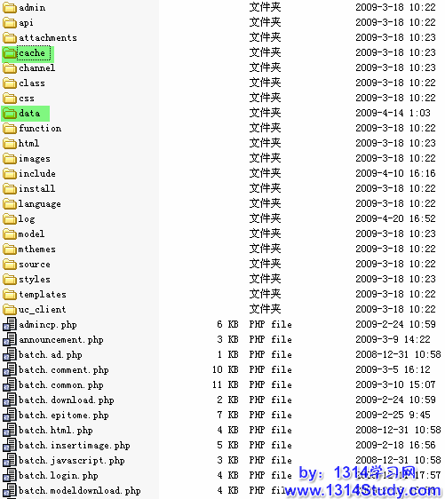 文件缓存,将列出的缓存文件类型的数据全部存储在 SupeSite 目录下的 cache 目录和 data 目录