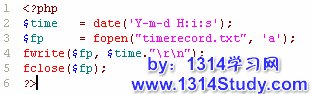 1、我们要设计计划任务所进行的操作,也就是任务脚本实现的功能。在这里,我们添加一个名为“计划任务测试”的计划任务,所实行的功能是在文件中记录执行计划任务时的时间。脚本(timerecordtest.php)代码如下图所示: