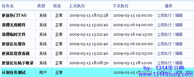 每个计划任务对应一个“立即执行”按钮,主要是方便站长手动执行该计划任务。点击之后,提示执行成功,如下图所示: