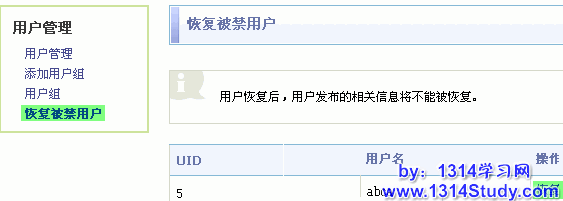 此功能主要是恢复 SupeSite 用户,用户恢复后,用户发布的相关信息将不能被恢复。
