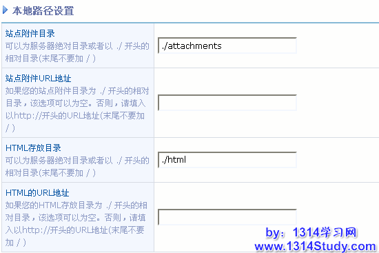 在这里可以设置附件和 HTML 静态网页存放的路径,进入系统后台 => 系统设置 => 本地路径设置。