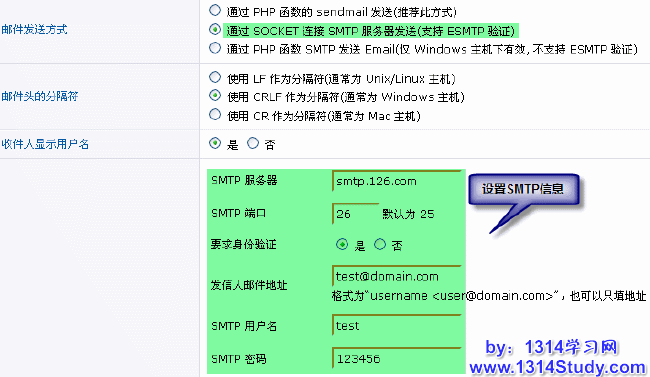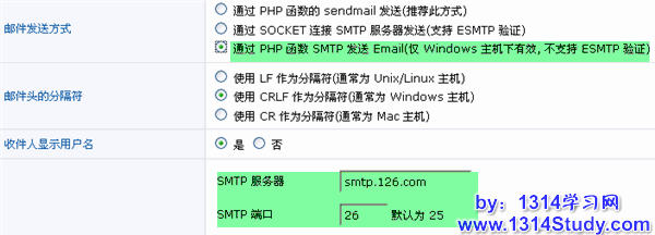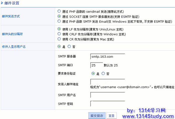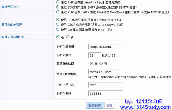 这种方式适用于 win 或者 linux 类服务器使用(适合于虚拟主机或者独立主机使用),并且支持 ESMTP 验证。需要站长拥有一个支持 SMTP 发送邮件的邮箱。“SMTP 服务器”与“SMTP 端口”可以联系邮件服务提供商解决。这里说明一点:发信人邮件地址,如果您填写的邮件服务器需要验证,必须填写正确的邮件地址。“SMTP 用户名”和“SMTP 密码”分别是邮件的账号密码。