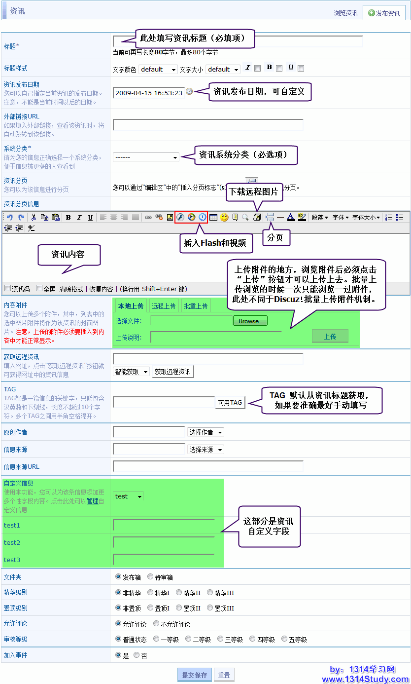 SupeSite 7.0 后台 => 信息管理 => 资讯管理