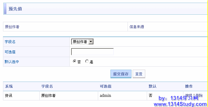 默认选项:可以设置是否让添加的该预先值为默认选择状态。