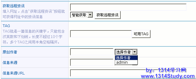 站长可以在后台的设置预先值,这样在发布的时候就可以直接从设置的预先值中选择。