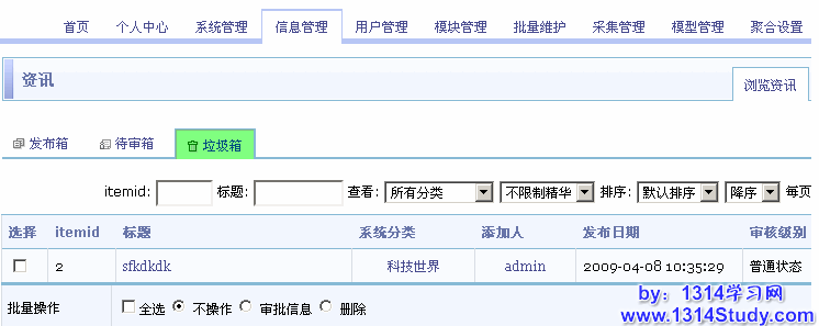 放入垃圾箱内的信息将不会在前台显示。