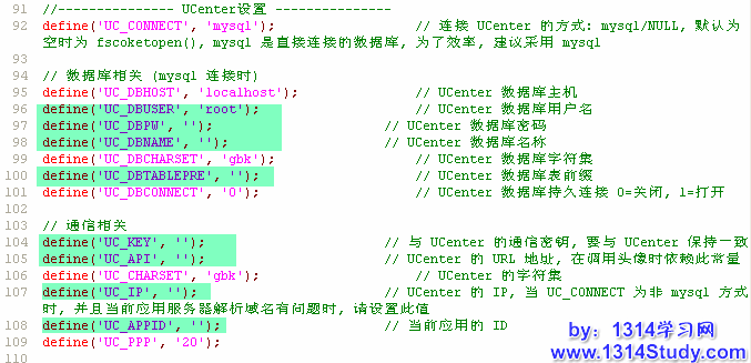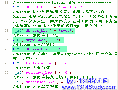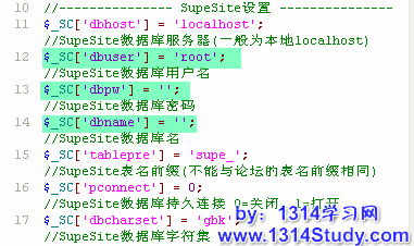 在本地对照旧的 config.php 配置 SupeSite 7.0 的 config.new.php 中如图所示的以下各项,配置完成后上传到空间根目录下并更名为 config.php。