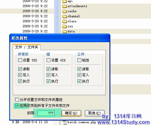使用 FTP 软件登录您的服务器,将服务器上以下目录、以及该目录下面的所有文件的属性设置为 777,Windows 主机请设置 Internet 来宾帐户可读写属性。如果下面目录中含有您没有的目录,就不用设置了。(注:*.*表示全部文件)