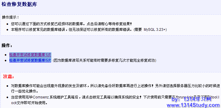 1、检查或修复数据库,对所有数据表进行检查修复工作。