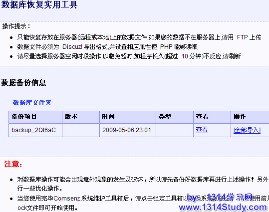 此功能可以一次性导入 SupeSite 7.0 产品备份的数据库。