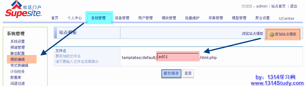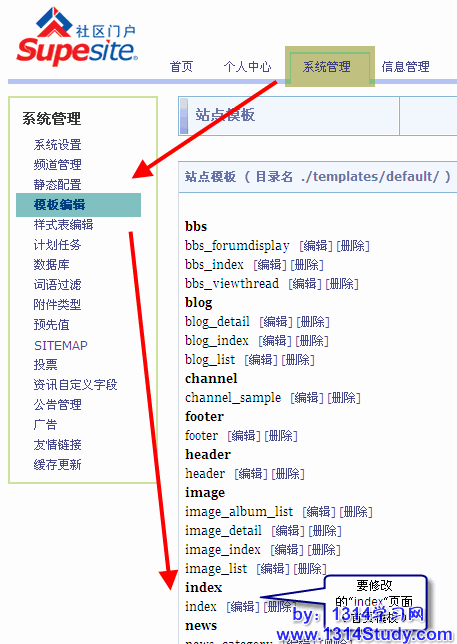 此修改方法适用于简单修改及初级用户,需要具备 html 设计能力。高级用户及大量模板自定制的用户,请使用 Dreamweaver 等网页编辑工具修改后上传至服务器中SupeSite 中 templates 目录内的相关模板文件夹。