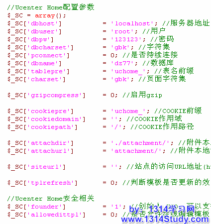 打开 UCHome 的配置文件 config.php,如下图所示:
