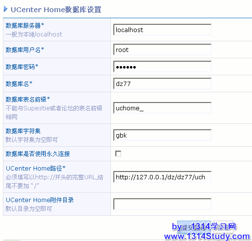 “UCenter Home附件目录”:默认为空,可以根据自己的设置填写。