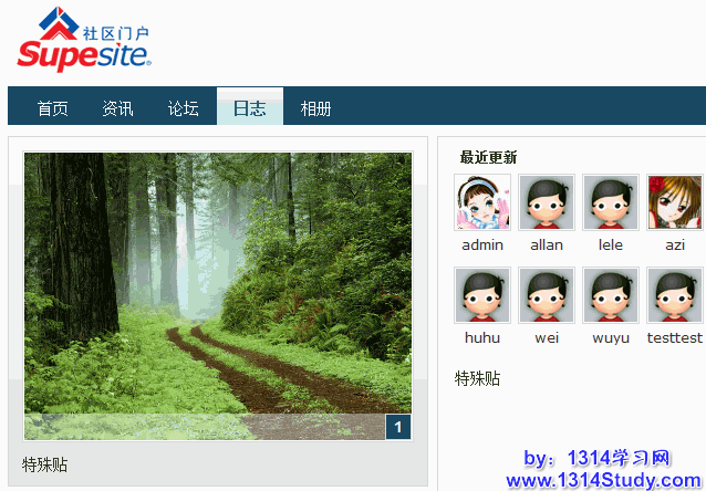 SupeSite 可以聚合 UCenter Home 中的内容,让用户在 SupeSite 首页查看用户在 UCenter Home 中发布的日志和相册。