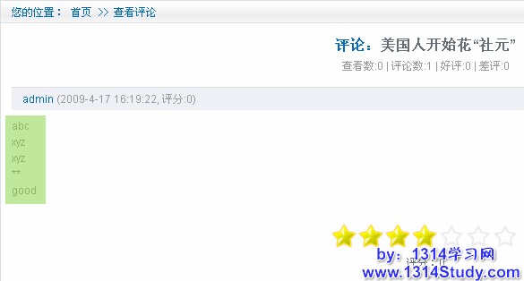 点击“发表评论”后,浏览发表的评论,如下图所示: