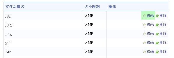 点击一个附件类型后面的“编辑”链接。即可进入编辑页面。