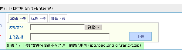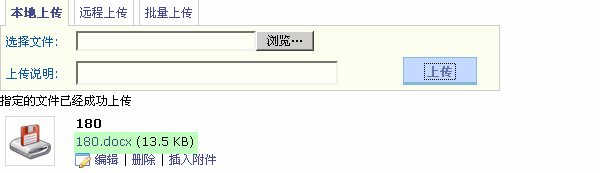 我们以添加一个 docx 类型(即 Word 2007 文档类型)的附件类型为例。在没有添加这个附件类型之前,在发布资讯的时候上传一个 docx 文件,会提示出错。