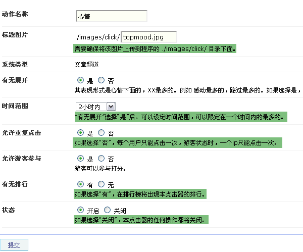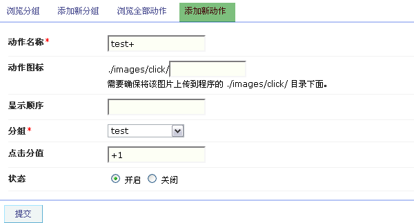 SupeSite7.5后台 => 信息管理 => 点击器 => 添加新动作: