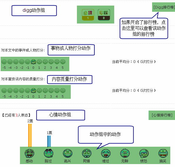 点击器是 SupeSite7.5 添加的新功能。通过该功能,站点会员可以更加生动形象地参与资讯的打分,表态等,增强了站点会员之间的互动性。