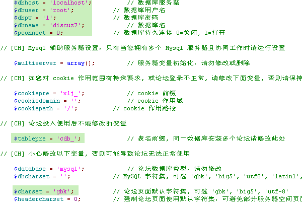 数据库字符集:MySQL 字符集, 可选 'gbk', 'big5', 'utf8', 'latin1',对应配置文件中 $dbcharset 的值。