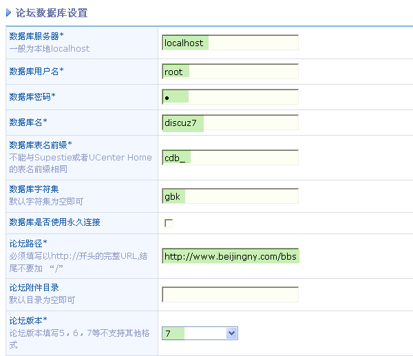 下面,逐项对应论坛数据库设置,如下图所示