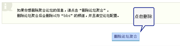 如果你想删除聚合论坛的信息,请点击“删除论坛聚合”。删除论坛聚合后会删除id为“bbs”的频道,并且清空论坛配置。