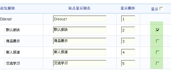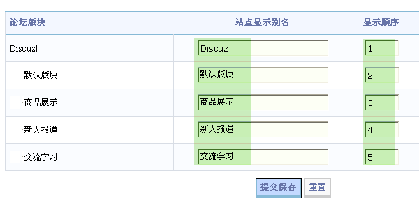 1、重新设定版块名称与显示顺序