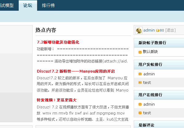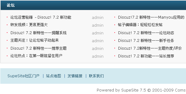 以自动收录为例,如果设定所有版块的收录模式为“自动”,则提交保存后在 SuperSite 首页和论坛频道下看到的内容为与论坛的主题帖相同。