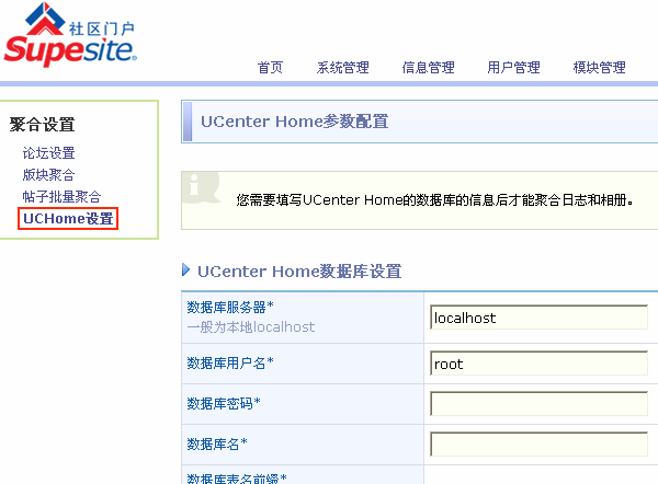 SupeSite 可以聚合 UCenter Home 中的内容,让用户在 SupeSite 首页查看用户在 UCenter Home 中发布的日志和相册。