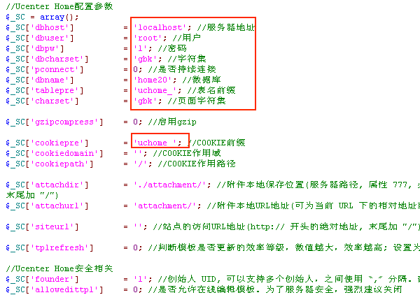 打开 UCHome 的配置文件 config.php,如下图所示: