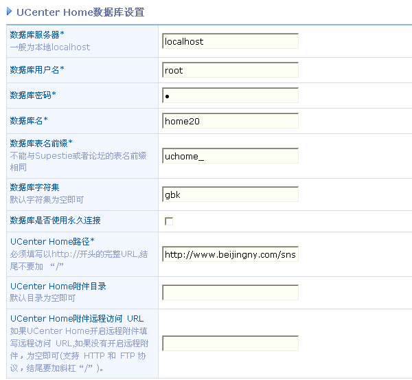 “UCenter Home附件目录”:默认为空,可以根据自己的设置填写。