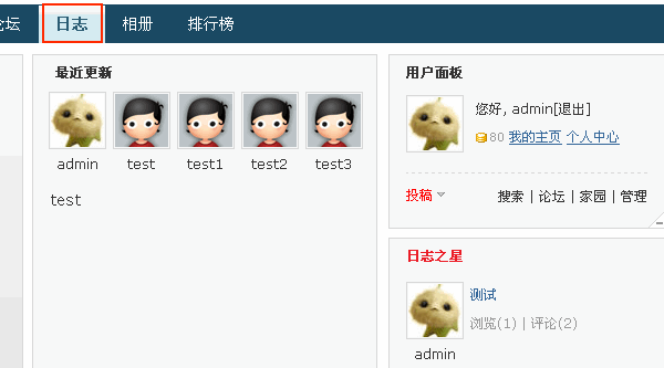 会列出最近更新的会员、日志之星、热门空间、最新日志、本周热门日志、本周热评日志等详细的信息。