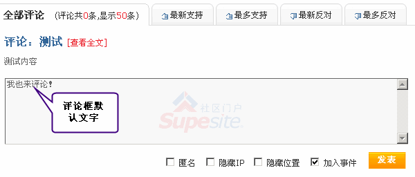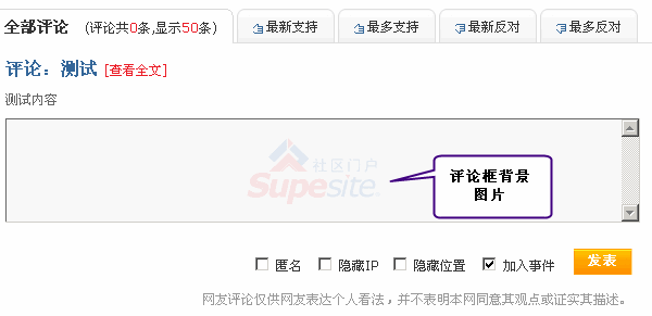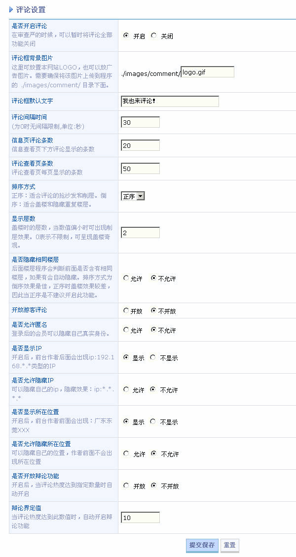 功能所在位置:SupeSite 后台 => 系统管理 => 系统设置 => 评论设置