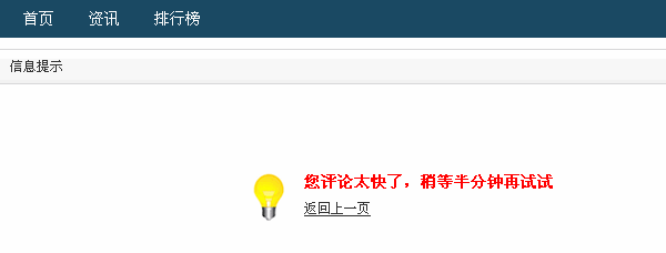 4、评论间隔时间:即多长时间评论一次,可有效防止刷屏,如果在限制范围内连续发表评论会有如下提示
