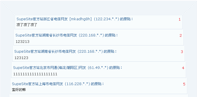 9、是否隐藏相同楼层:后面楼层程序会判断前面是否含有相同楼层,如果有会自动隐藏。排序方式为倒序效果最佳,正序时盖楼效果较差,因此当正序是不建议开启此功能。