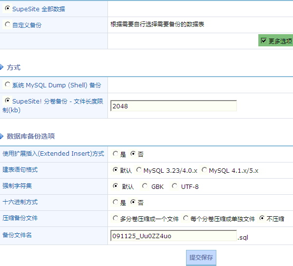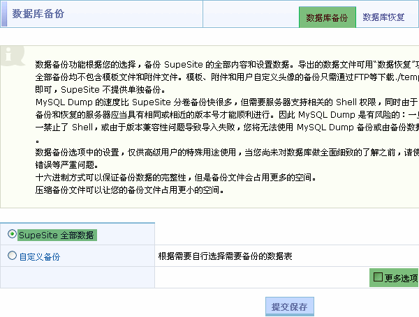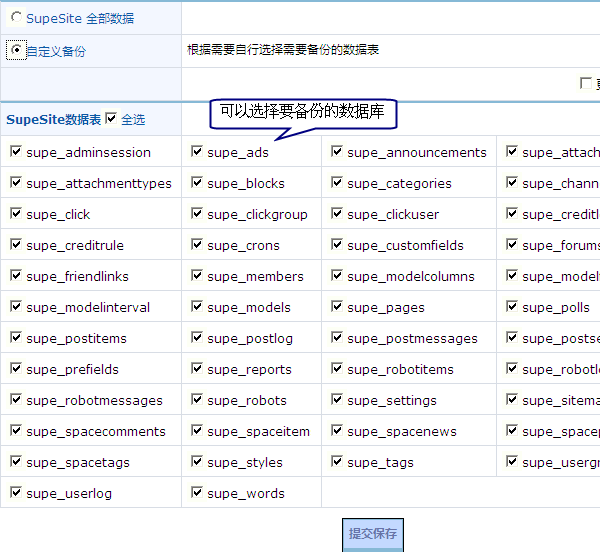 建议选择“SupeSite 全部数据”进行数据库的备份;