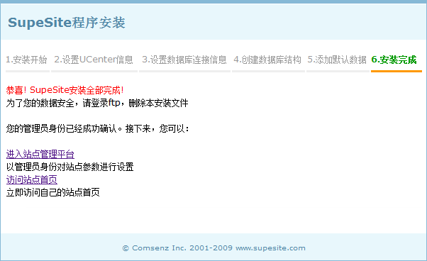 点击“访问站点首页”立即访问 SupeSite 7.5 首页: