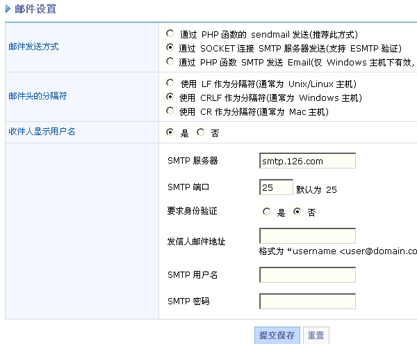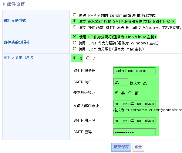 这种方式适用于 win 或者 Linux 类服务器使用(适合于虚拟主机或者独立主机使用),并且支持 ESMTP 验证。需要站长拥有一个 SMTP 服务器,例如 Foxmail 的 SMTP 服务器。