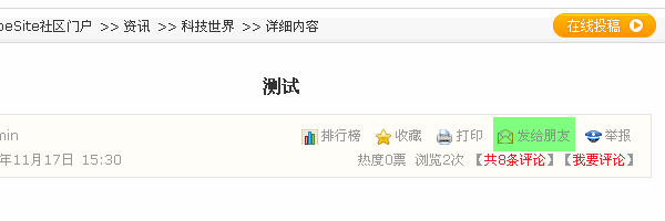 在 SupeSite 中,主要有两个地方用到邮件功能:发给好友和找回密码。如下图