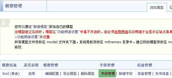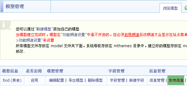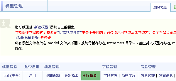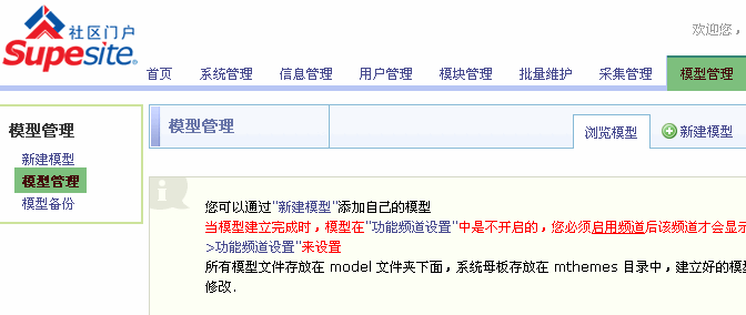 SupeSite7.5 后台 => 模型管理: