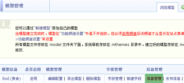 站长可以在管理后台自由开启或关闭某个模型。只有模型出于开启状态时,才可以作为频道在站点首页菜单显示。