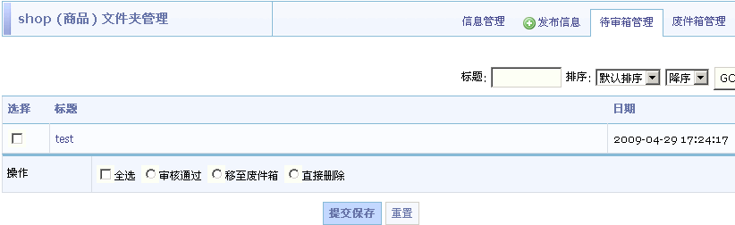 可以将会员发布的信息进行以下的操作:通过审核、移至废件箱、直接删除。