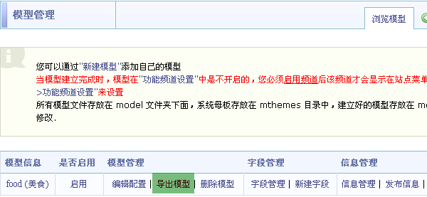 注意:模型导出仅导出其模型数据库表结构文件(*.sql),模型模板文件(*.html.php),模型所需的图片(*.jpg 和 *.gif)。