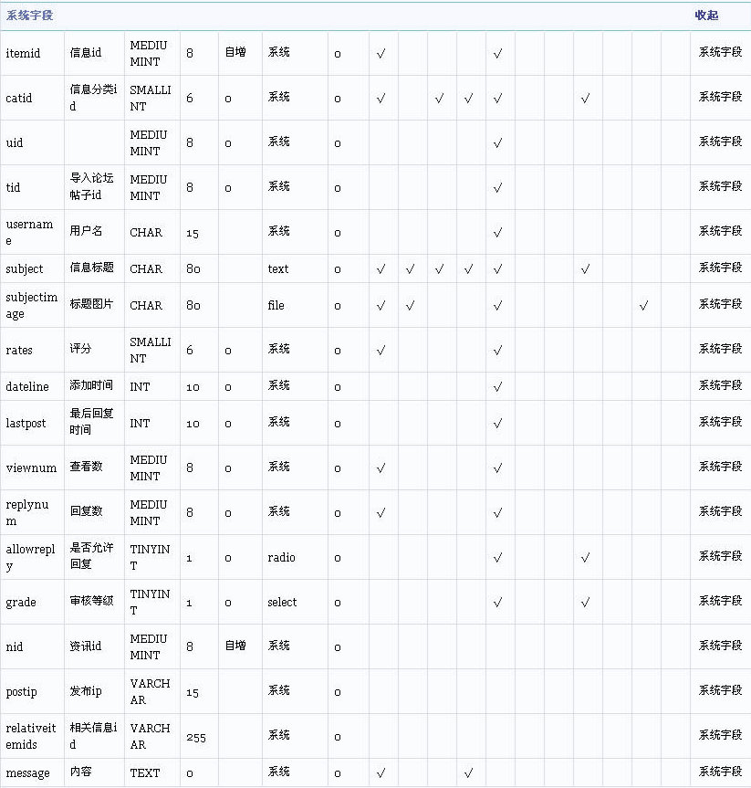 您可以点“展开”查看系统字段详细信息,如下图所示: