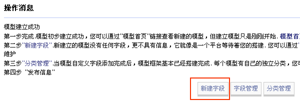 模型建立成功后,需要为该模型建立字段。没有字段的模型,是不能投稿的,更不会具有信息。