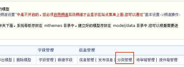 至此新建模型已经讲解完毕,新建一个模型后,您需要开启该模型,并且在频道管理中开放该模型,更新缓存,然后首页就可以看到该模型频道。